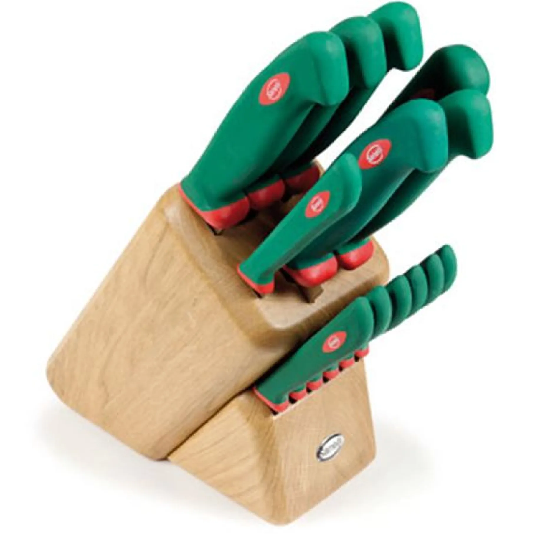 Linea Premana Professional Ceppo Maxime 13 pz. Rovere Il classico e intramontabile ceppo in rovere massello comprende, oltre ai sei coltelli della composizione base, l’acciaino indispensabile per mantenere inalterato il filo di ogni coltello e 6 coltelli da costata. Contiene: – COLTELLO ARROSTO 24 cm.: coltello a lama semirigida, ideale per affettare carni cotte (es. arrosti, bolliti). – COLTELLO PROSCIUTTO 24 cm.: coltello a lama semirigida, ideale per salumi di piccola/media dimensione (es. salame, coppa, pancetta). – COLTELLO PANE SEGHETTATO 24 cm.: coltello a lama semirigida e seghettata, ideale per affettare pane, focacce e pizze. – COLTELLO CUCINA 18 cm.: coltello a lama rigida ideale per il taglio e la mondatura di frutta e verdura. – COLTELLO DISOSSO 16 cm.: coltello ideale per disossare, spellare, togliere tendini e grasso. La punta facilita le operazioni vicino all’osso. – SPELUCCHINO 10 cm.: coltello a lama semirigida, ideale per tagliare e mondare frutta e verdura. – ACCIAINO 22 cm.: affilatoio per coltelli con lama di lunghezza piccolo/medio. – COLTELLO COSTATA 12 cm. (6 pz.): coltello seghettato da tavola per bistecca, pizza, pomodoro e pane. Lama semirigida, seghettata e appuntita. Manico ergonomico in doppio stampaggio e materiale antiscivolo con additivo Biomaster. EAN CODE: 8007372007172