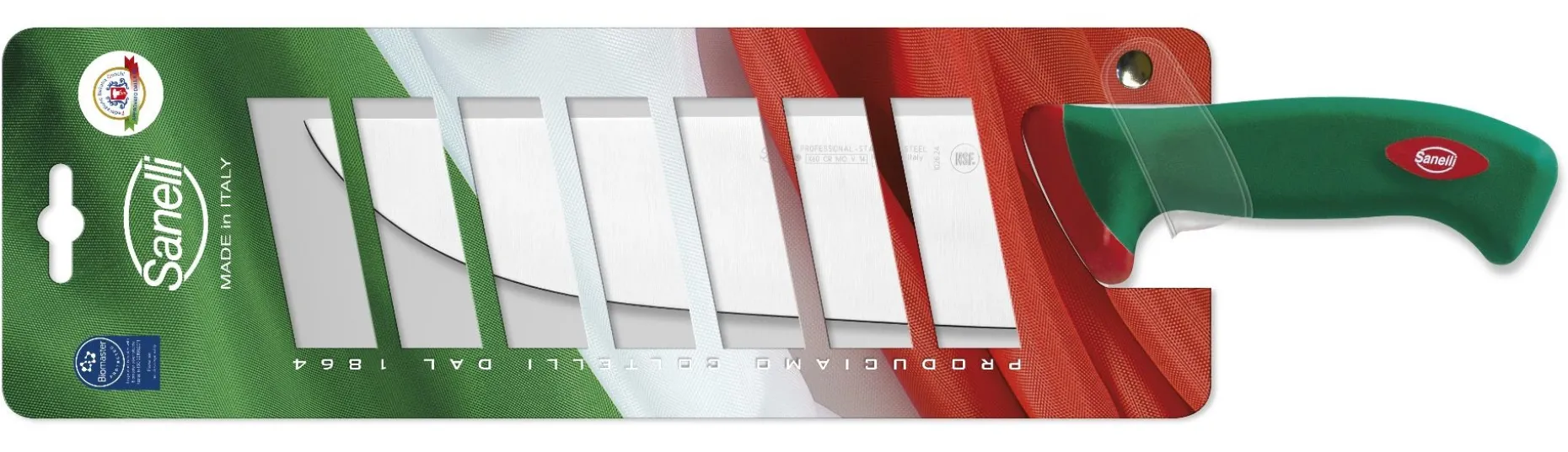 Realizzando i coltelli verdi della linea Premana Professional le Coltellerie Sanelli S.r.l. hanno notevolmente migliorato il concetto di sicurezza, affidabilità, igiene in maniera decisiva, ponendo attenzione non soltanto a durezza, flessibilità e potere tranciante delle lame, ma anche alla forma ergonomica del manico.