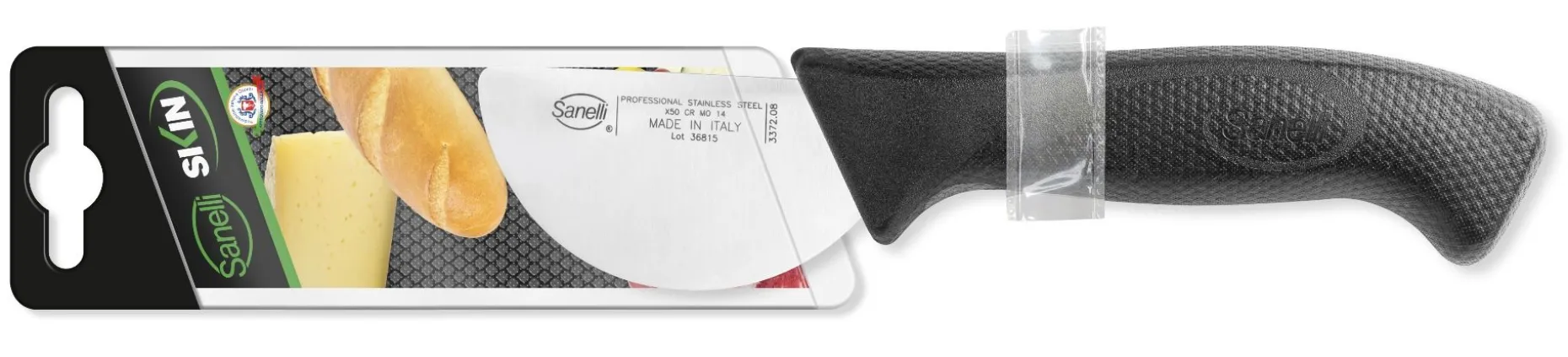La nuova linea Skin abbina la comprovata alta qualità delle lame Sanelli ad un manico completamente nuovo. Grazie all’impiego di una tecnologia innovativa per la “texturizzazione”, la superficie del manico SKIN differisce da qualsiasi altro e offre una presa sicura e confortevole, annullando la sensazione di rigidità. La forma ergonomica è garanzia di sicurezza. Il materiale utilizzato risponde alle severe normative igieniche e di contatto con le sostanze alimentari. Una linea completa di coltelli che grazie all’ottimo rapporto qualità/prezzo, è l’ideale per ogni tipologia di cucina, professionale o casalinga.