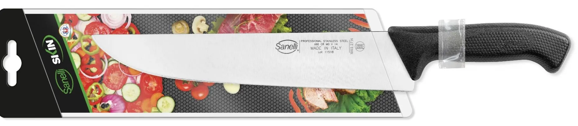 La nuova linea Skin abbina la comprovata alta qualità delle lame Sanelli ad un manico completamente nuovo. Grazie all’impiego di una tecnologia innovativa per la “texturizzazione”, la superficie del manico SKIN differisce da qualsiasi altro e offre una presa sicura e confortevole, annullando la sensazione di rigidità. La forma ergonomica è garanzia di sicurezza. Il materiale utilizzato risponde alle severe normative igieniche e di contatto con le sostanze alimentari. Una linea completa di coltelli che grazie all’ottimo rapporto qualità/prezzo, è l’ideale per ogni tipologia di cucina, professionale o casalinga.