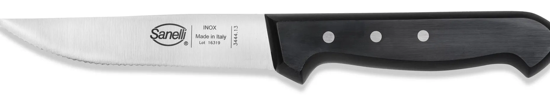 Coltello seghettato da tavola ideale per il taglio di carni cotte (es. bistecche ecc.).
