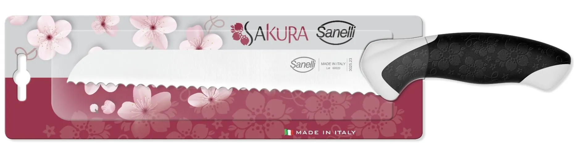 Manico ergonomico in doppio stampaggio piccolo e maneggevole. Piacevolmente disegnato con una texture che rievoca la fioritura dei ciliegi (Sakura).