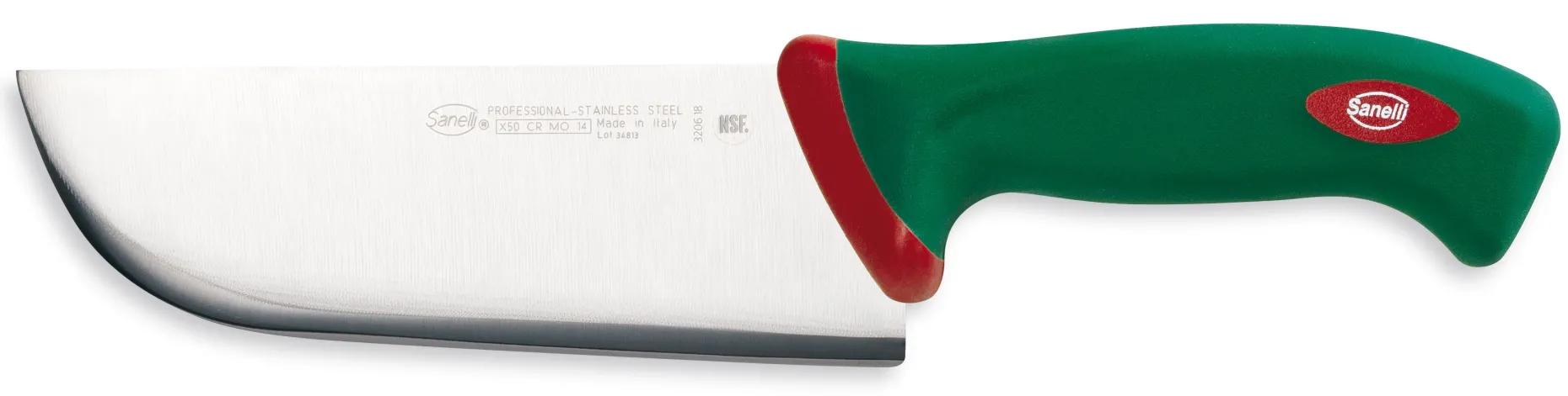 Coltello a lama rigida e pesante, ideale per la tranciatura di carni crude con osso (es. pollo, coniglio, costine).