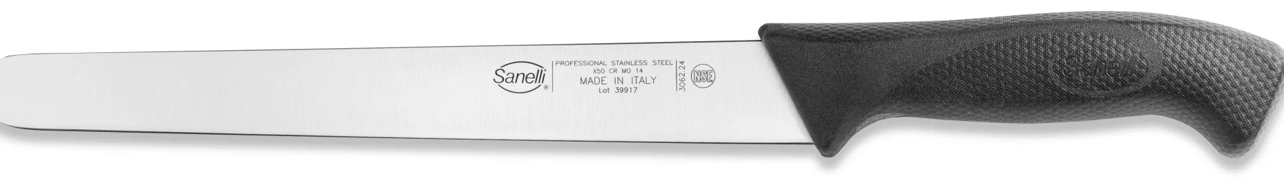 Coltello a lama semirigida, ideale per salumi di piccola/media dimensione (es. salame, coppa, pancetta).