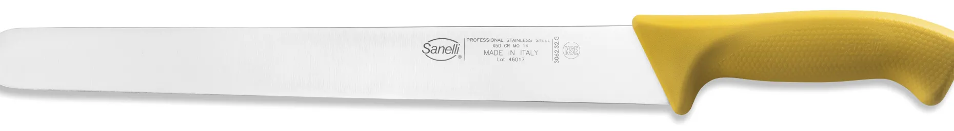 Coltello a lama semirigida, ideale per salumi di media/grande dimensione (es. crudo, bologna, cotto).