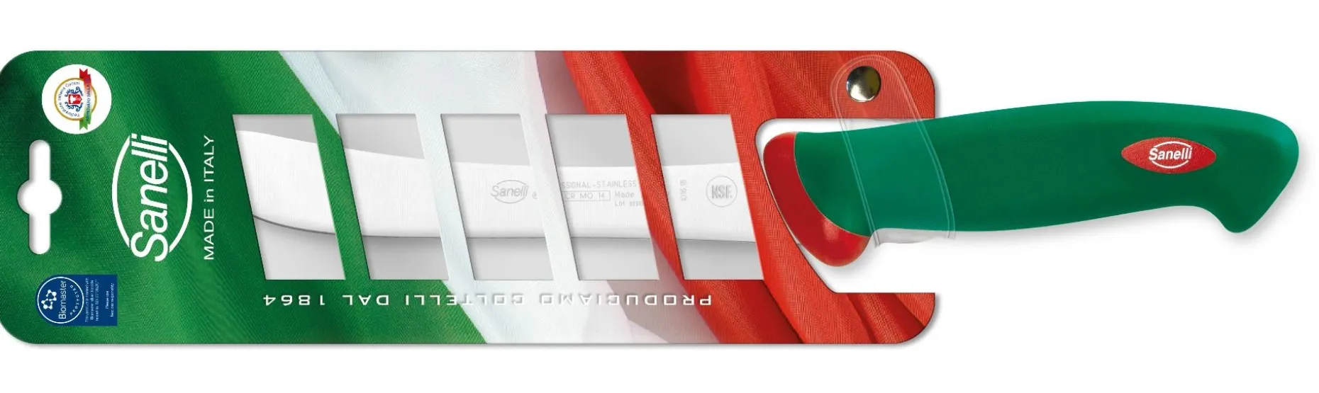 Coltello a lama curva e semirigida come il modello americano scimitarra. Ideale per tagliare fettine di carne, compreso pollame, arrosti e prosciutti e altre carni cotte di grandi dimensioni. Particolarmente indicato per BBQ.
