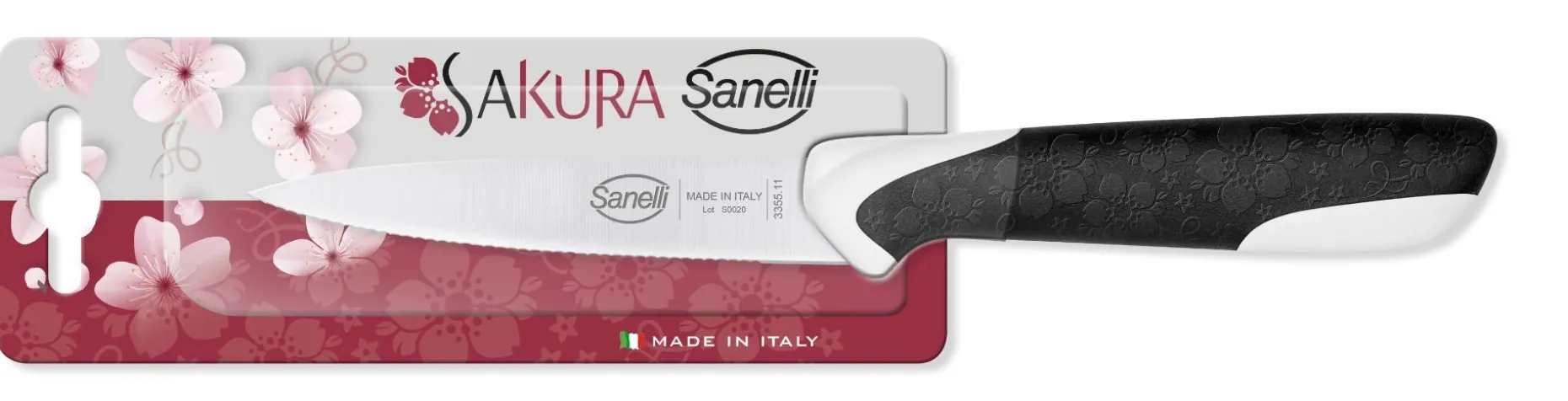 Manico ergonomico in doppio stampaggio piccolo e maneggevole. Piacevolmente disegnato con una texture che rievoca la fioritura dei ciliegi (Sakura).