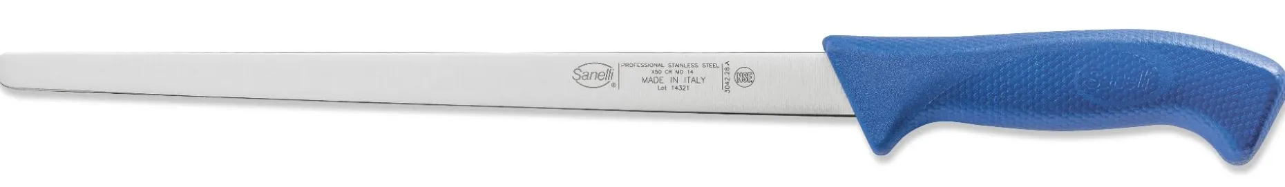 Coltello a lama semirigida ottimo per affettare il prosciutto crudo in morsa. Adatto anche per il taglio di salmone o salumi morbidi.