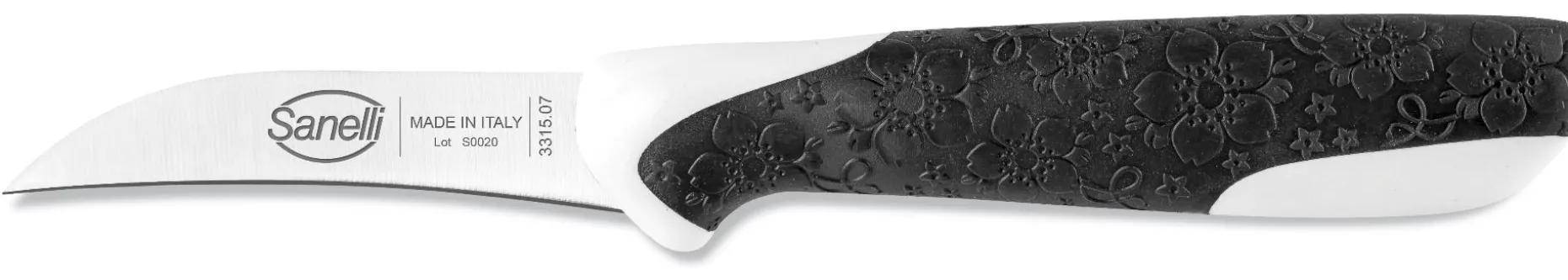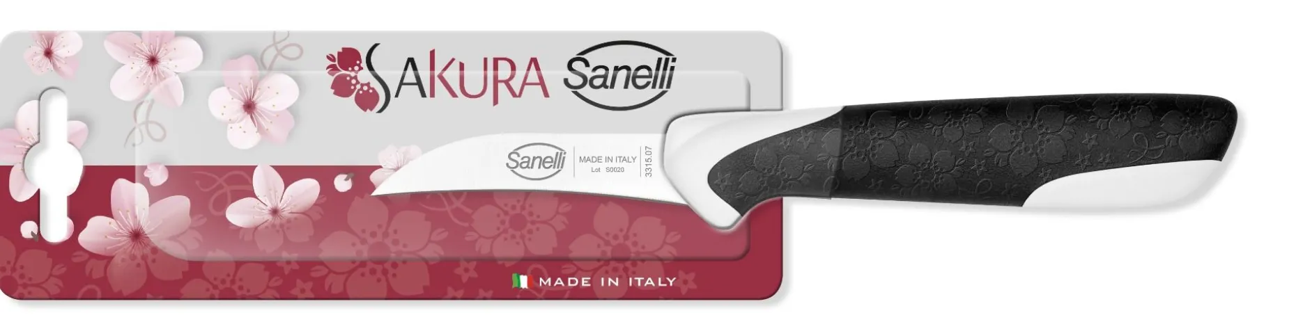Manico ergonomico in doppio stampaggio piccolo e maneggevole. Piacevolmente disegnato con una texture che rievoca la fioritura dei ciliegi (Sakura).