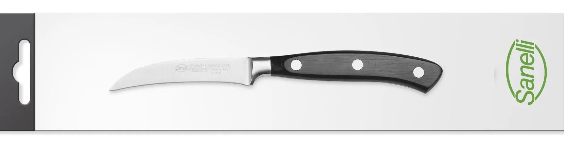Coltello a lama rigida in acciaio Inox, ideale per tagliare e mondare frutta e verdura.
