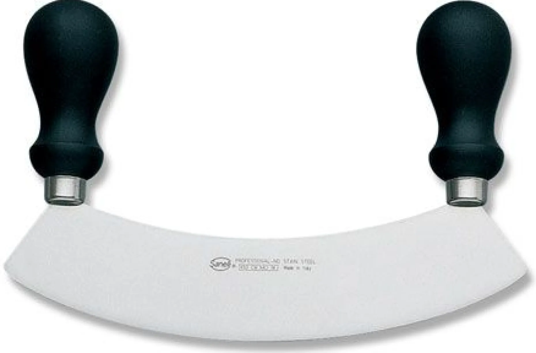 Linea Skin Mezzaluna 24 manico tondo Lunghezza lama: 24 cm. Utensile ideale per tritare e sminuzzare ogni genere di verdura. Manico ergonomico in materiale antiscivolo. Lavabile in lavastoviglie.