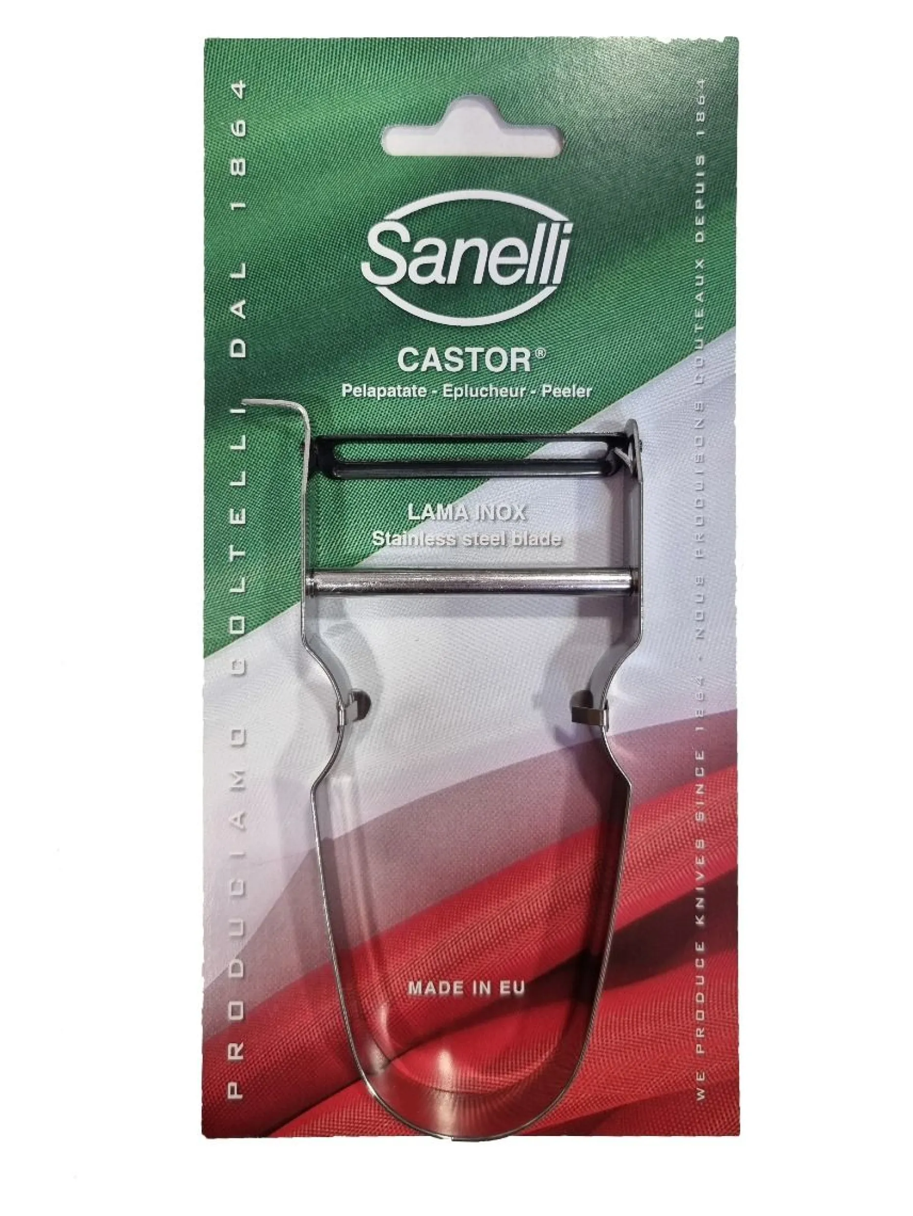 Linea Accessori Professionali Pelapatate Castor Confezionato singolarmente, con cartoncino serigrafato Sanelli. Pelapatate ad archetto, totalmente in acciaio inossidabile con lama in acciaio INOX. Funzionalità, praticità e semplicità d’uso. Garantito da Sanelli. EAN CODE: 8007372003761