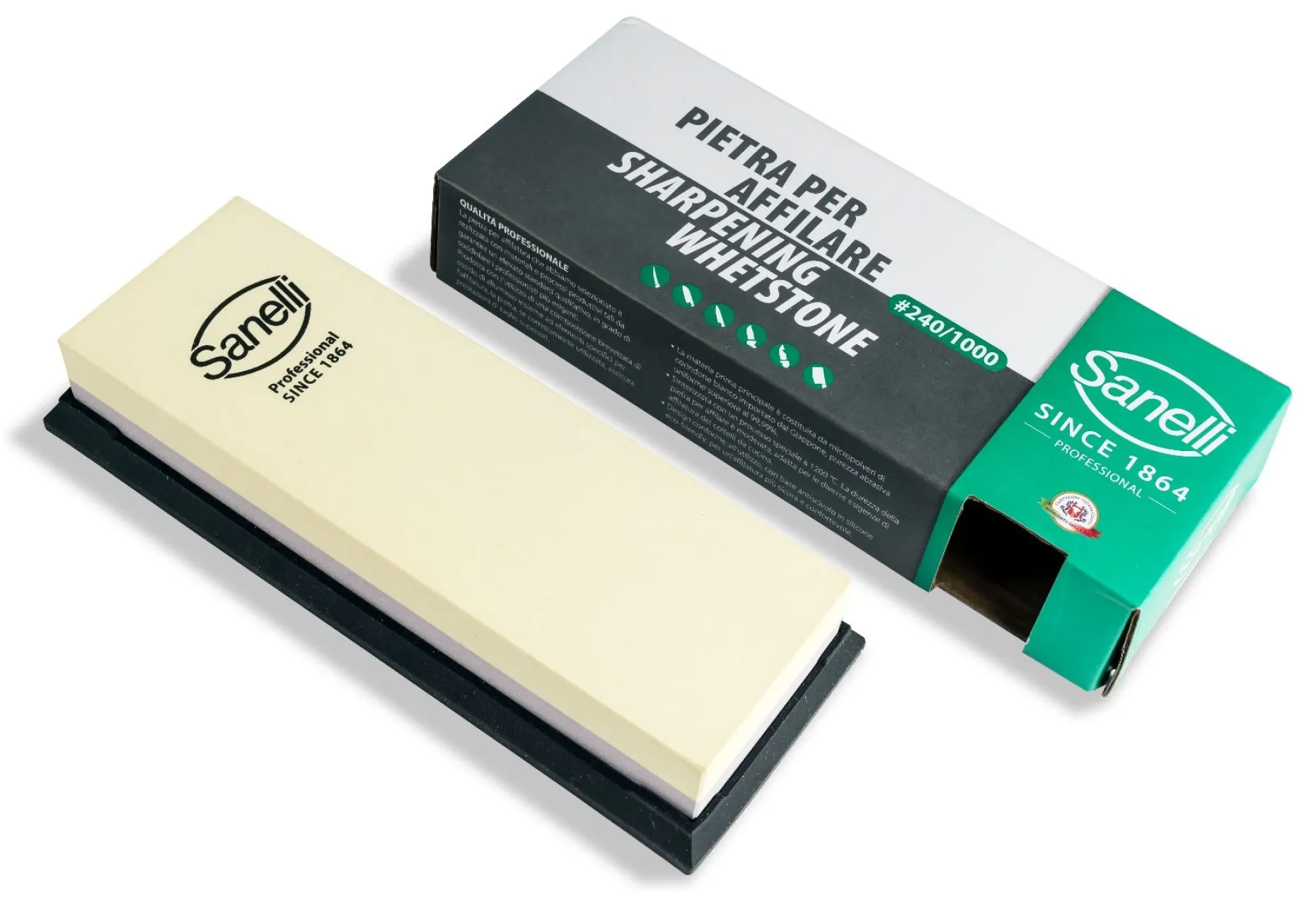 Prodotta con l’utilizzo di una composizione brevettata di ossido di alluminio insieme ad elementi specifici per l’affilatura, la pietra, se correttamente utilizzata, assicura prestazioni di taglio superiori.