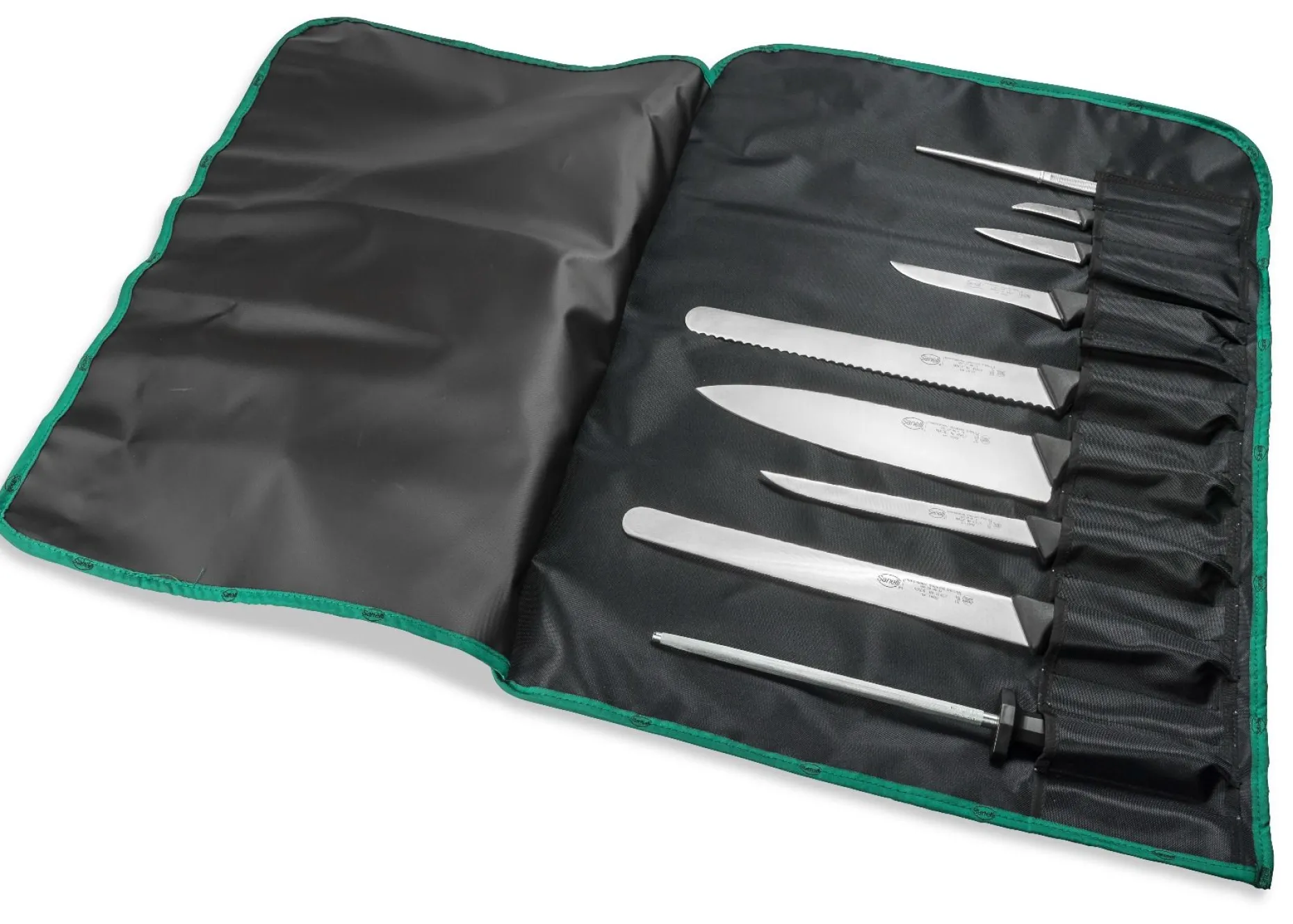 Rotolo cuoco 9 pz. professional con alloggio di 8/9 coltelli e accessori con interno lavabile. Contiene: