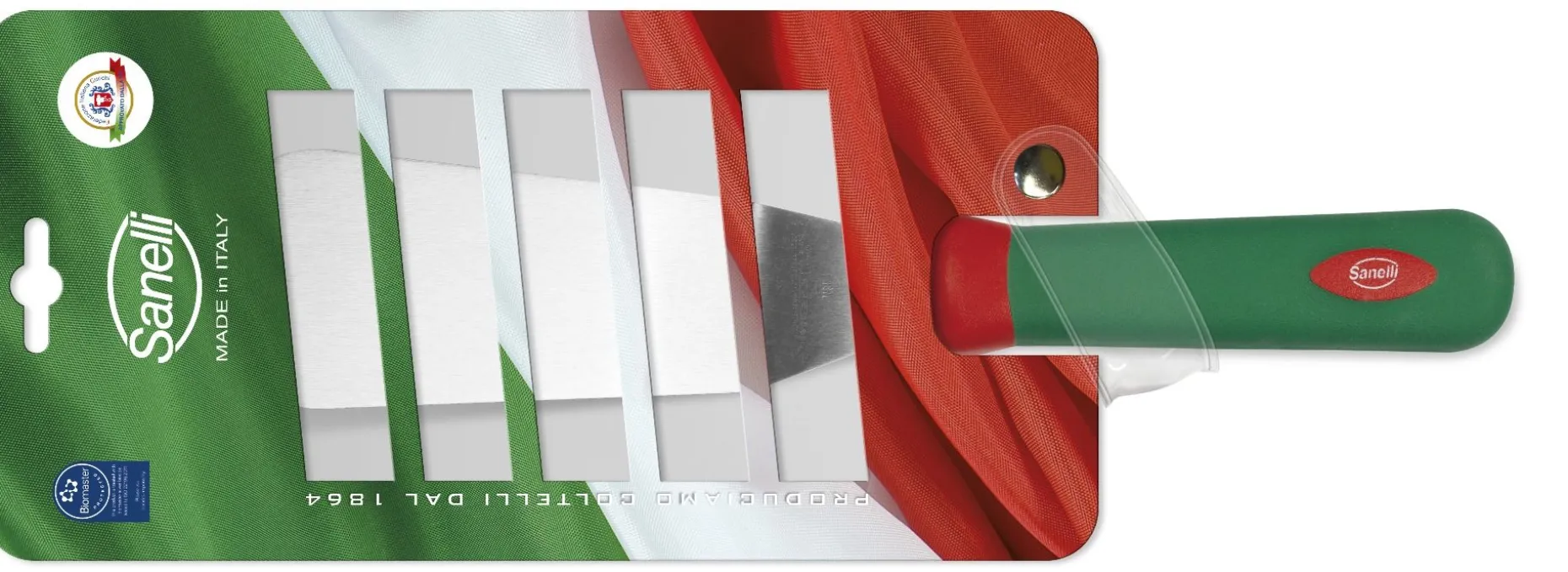 Manico ergonomico in doppio stampaggio e materiale antiscivolo con additivo Biomaster.