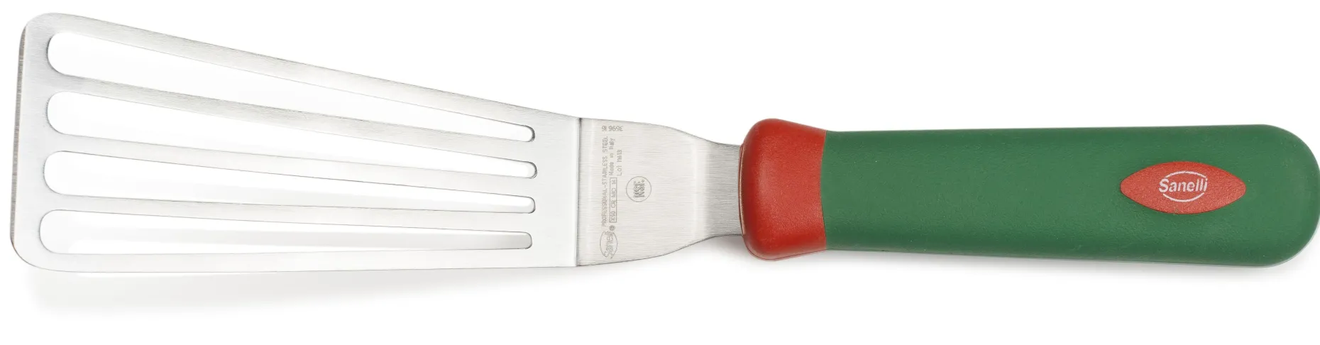 Spatola flessibile, con fessure che permettono ai liquidi di scolare. Speciale per fritti (es. patatine, pesce).