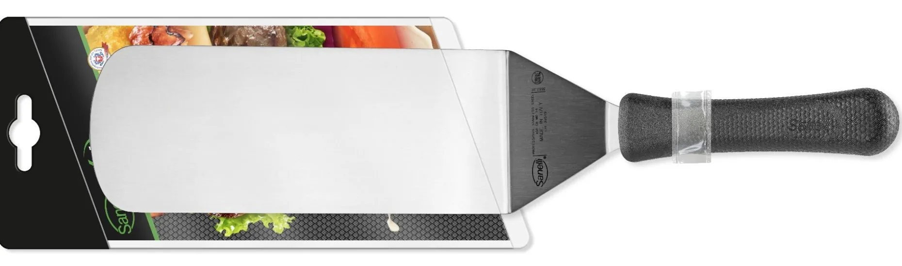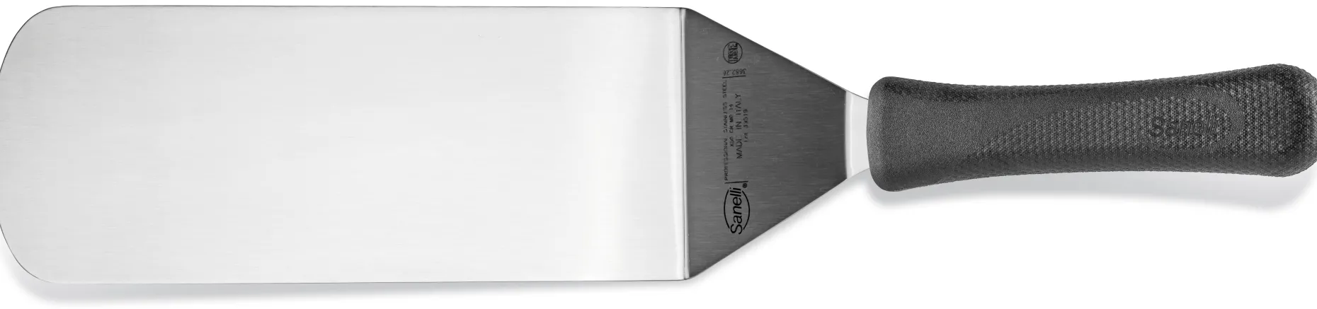 Spatola flessibile, a grande superficie, ideale per cucinare alla piastra e alla griglia.